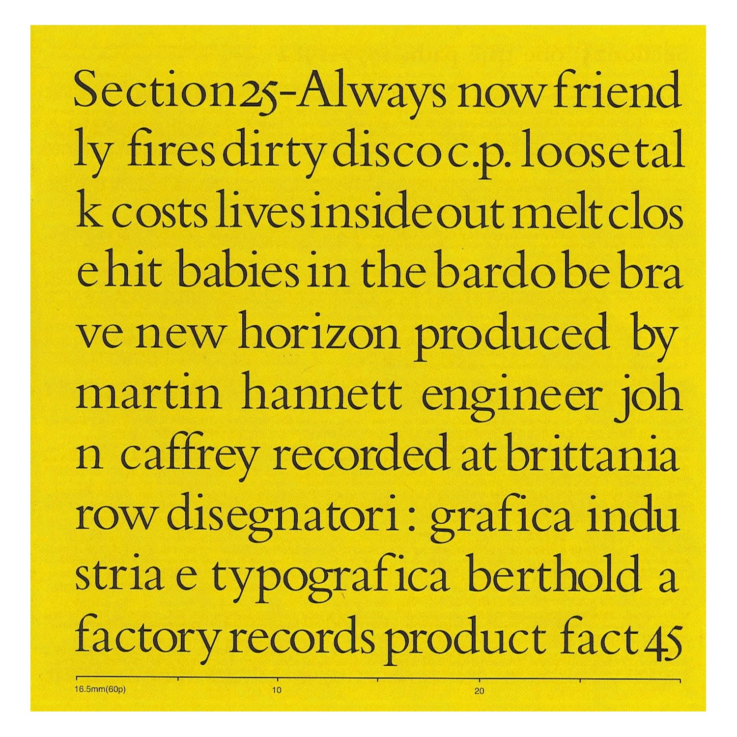 Section 25's output on Factory often came under critical scrutiny from the music press on the strength of its accompanying packaging, or cost of it, rather than the music within. On the DVD Shadowplayers, the late Larry Cassidy lamented one journalist's callous review of debut-album Always Now which came dressed in a lavish fold-out sleeve that reputedly cost a mint to produce. "You can't turn a sow's ear into a silk purse but you can put it in one" - shame that line was used to describe S25's earnest efforts (it could certainly be applied to much of the shit in the charts today).